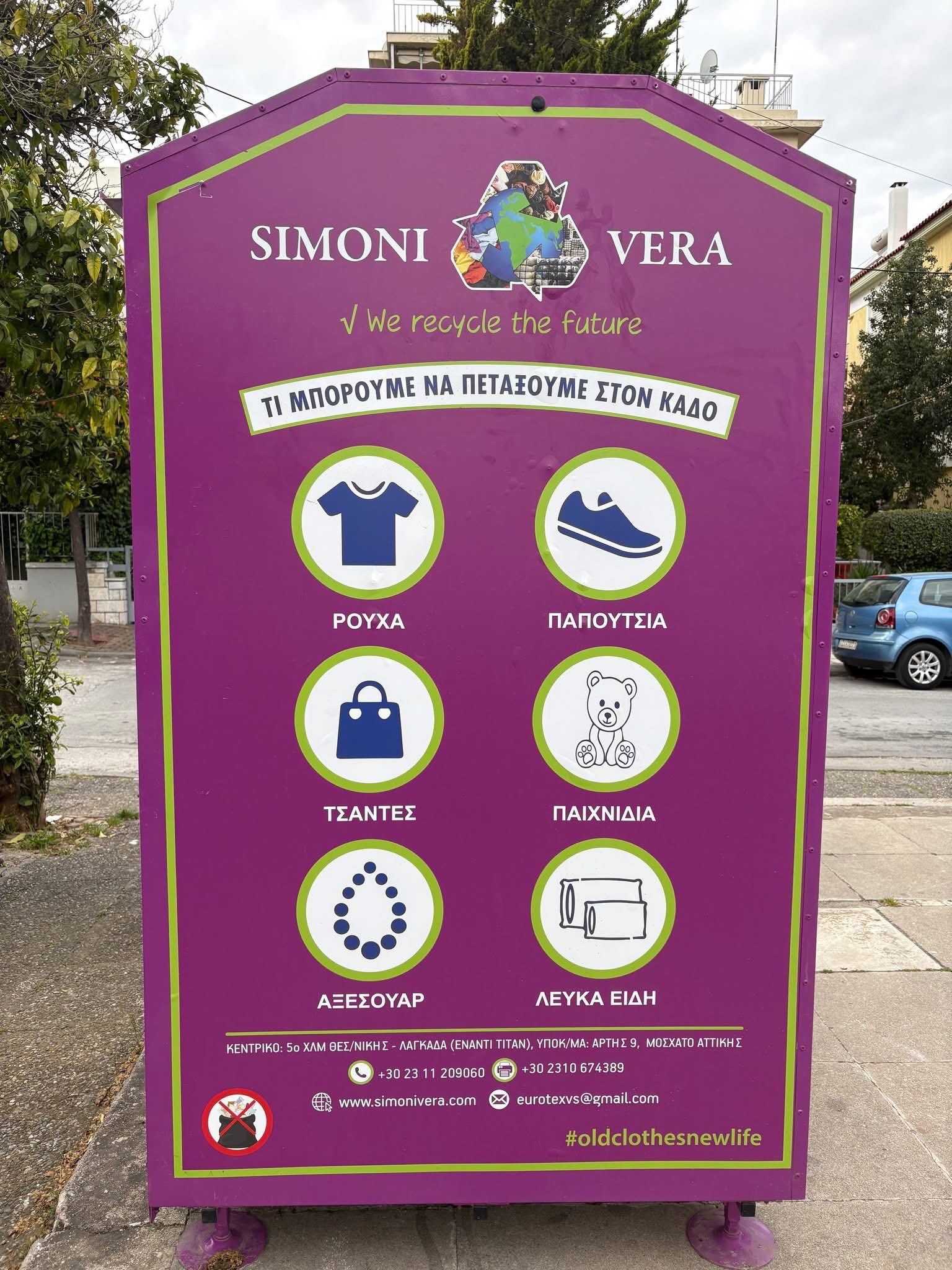 👉Στους μωβ κάδους οι πολίτες μπορούν να αφήνουν ρούχα, παπούτσια, λευκά είδη (σεντόνια, πετσέτες κλπ), τσάντες, αξεσουάρ και παιχνίδια (υφασμάτινα) από τα οποία μετά από διαλογή, όσα είναι σε καλή κατάσταση, θα δίνονται στις Κοινωνικές Δομές του Δήμου ή σε φιλανθρωπικούς φορείς.